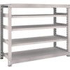 ●間口(mm):1561●奥行(mm):581●高さ(mm):1211●有効間口(mm):1440●色:ネオグレー●棚段数(段):5●均等積載量(kg/段):500●最大積載量(kg/台):2500●棚板調整ピッチ(mm):25●タイプ:単体型●組立目安:2人30分