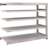 ●間口(mm):1500●奥行(mm):581●高さ(mm):1211●有効間口(mm):1440●色:ネオグレー●棚段数(段):5●均等積載量(kg/段):500●最大積載量(kg/台):2500●棚板調整ピッチ(mm):25●タイプ:連結型●組立目安:2人30分
