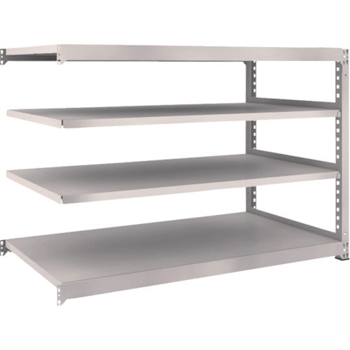 ●間口(mm):1800●奥行(mm):931●高さ(mm):1211●有効間口(mm):1740●色:ネオグレー●棚段数(段):4●均等積載量(kg/段):500●最大積載量(kg/台):2500●棚板調整ピッチ(mm):25●タイプ:連結型●組立目安:2人30分