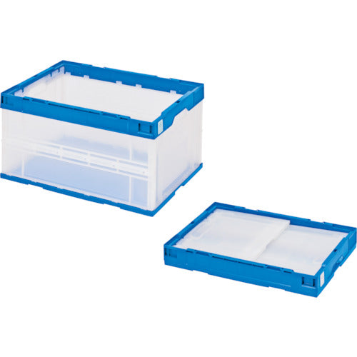 積水 折りたたみコンテナ エコタイプ フタ無し 透明×ダークブルー 75リットル 透明青