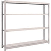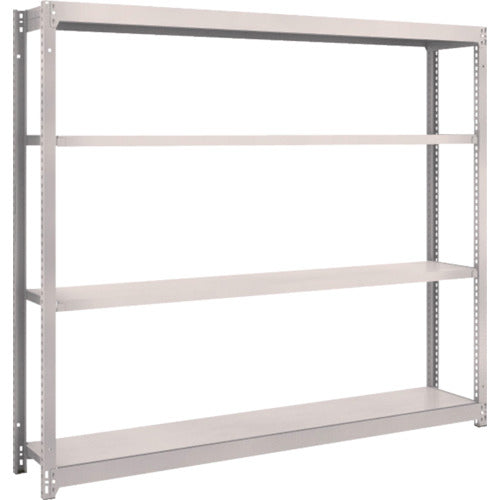 ●間口(mm):1803●奥行(mm):304●高さ(mm):1506●有効間口(mm):1716●色:ネオグレー●棚段数(段):4●均等積載量(kg/段):150●最大積載量(kg/台):1000●棚板調整ピッチ(mm):25●タイプ:単体型●組立目安:2人30分