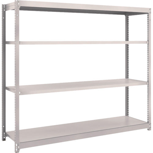 ●間口(mm):1803●奥行(mm):454●高さ(mm):1506●有効間口(mm):1716●色:ネオグレー●棚段数(段):4●均等積載量(kg/段):150●最大積載量(kg/台):1000●棚板調整ピッチ(mm):25●タイプ:単体型●組立目安:2人30分