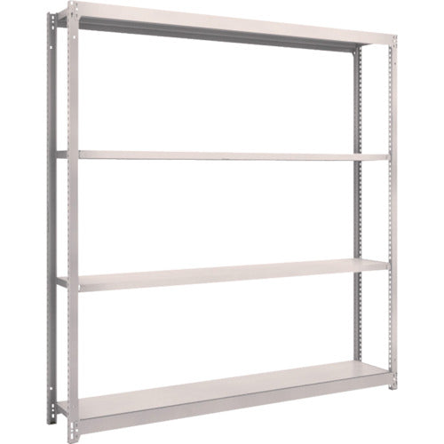 ●間口(mm):1803●奥行(mm):304●高さ(mm):1806●有効間口(mm):1716●色:ネオグレー●棚段数(段):4●均等積載量(kg/段):150●最大積載量(kg/台):1000●棚板調整ピッチ(mm):25●タイプ:単体型●組立目安:2人30分