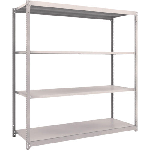 ●間口(mm):1803●奥行(mm):604●高さ(mm):1806●有効間口(mm):1716●色:ネオグレー●棚段数(段):4●均等積載量(kg/段):150●最大積載量(kg/台):1000●棚板調整ピッチ(mm):25●タイプ:単体型●組立目安:2人30分