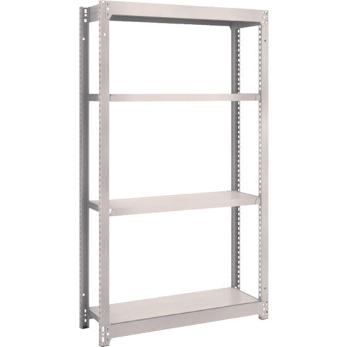●間口(mm):903●奥行(mm):304●高さ(mm):1506●有効間口(mm):816●色:ネオグレー●棚段数(段):4●均等積載量(kg/段):150●最大積載量(kg/台):1000●棚板調整ピッチ(mm):25●タイプ:単体型●組立目安:2人30分