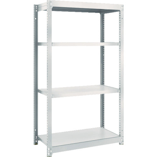 ●間口(mm):903●奥行(mm):454●高さ(mm):1506●有効間口(mm):816●色:ネオグレー●棚段数(段):4●均等積載量(kg/段):150●最大積載量(kg/台):1000●棚板調整ピッチ(mm):25●タイプ:単体型●組立目安:2人30分