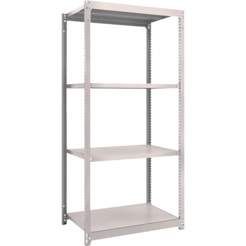 ●間口(mm):903●奥行(mm):604●高さ(mm):1806●有効間口(mm):816●色:ネオグレー●棚段数(段):4●均等積載量(kg/段):150●最大積載量(kg/台):1000●棚板調整ピッチ(mm):25●タイプ:単体型●組立目安:2人30分