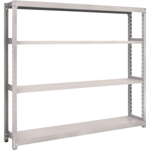 ●間口(mm):1802●奥行(mm):309●高さ(mm):1507●有効間口(mm):1716●色:ネオグレー●棚段数(段):4●均等積載量(kg/段):200●最大積載量(kg/台):1500●棚板調整ピッチ(mm):25●タイプ:単体型●組立目安:2人30分