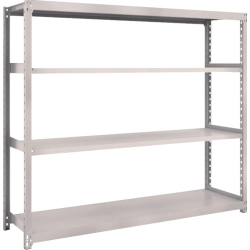 ●間口(mm):1802●奥行(mm):459●高さ(mm):1507●有効間口(mm):1716●色:ネオグレー●棚段数(段):4●均等積載量(kg/段):200●最大積載量(kg/台):1500●棚板調整ピッチ(mm):25●タイプ:単体型●組立目安:2人30分