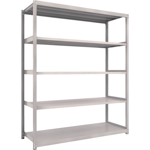 ●間口(mm):1802●奥行(mm):609●高さ(mm):2107●有効間口(mm):1716●色:ネオグレー●棚段数(段):5●均等積載量(kg/段):1500●最大積載量(kg/台):1500●棚板調整ピッチ(mm):25●タイプ:単体型●組立目安:2人30分
