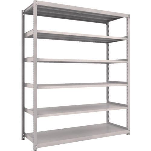 ●間口(mm):1802●奥行(mm):609●高さ(mm):2107●有効間口(mm):1716●色:ネオグレー●棚段数(段):6●均等積載量(kg/段):200●最大積載量(kg/台):1500●棚板調整ピッチ(mm):25●タイプ:単体型●組立目安:2人30分