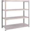 ●間口(mm):1203●奥行(mm):454●高さ(mm):1206●有効間口(mm):1116●色:ネオグレー●棚段数(段):4●均等積載量(kg/段):150●最大積載量(kg/台):1000●棚板調整ピッチ(mm):25●タイプ:単体型●組立目安:2人30分