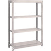 ●間口(mm):903●奥行(mm):304●高さ(mm):1206●有効間口(mm):816●色:ネオグレー●棚段数(段):4●均等積載量(kg/段):150●最大積載量(kg/台):1000●棚板調整ピッチ(mm):25●タイプ:単体型●組立目安:2人30分