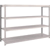 ●間口(mm):1803●奥行(mm):454●高さ(mm):1206●有効間口(mm):1716●色:ネオグレー●棚段数(段):4●均等積載量(kg/段):150●最大積載量(kg/台):1000●棚板調整ピッチ(mm):25●タイプ:単体型●組立目安:2人30分