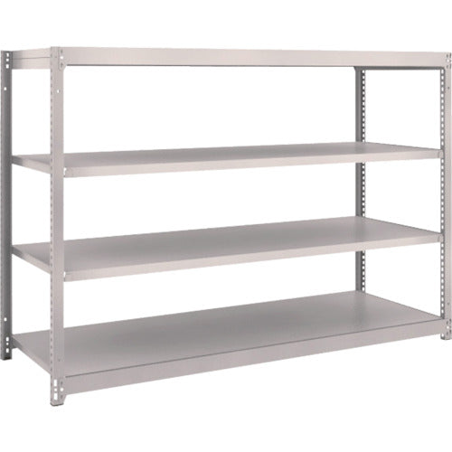 ●間口(mm):1803●奥行(mm):604●高さ(mm):1206●有効間口(mm):1716●色:ネオグレー●棚段数(段):4●均等積載量(kg/段):150●最大積載量(kg/台):1000●棚板調整ピッチ(mm):25●タイプ:単体型●組立目安:2人30分