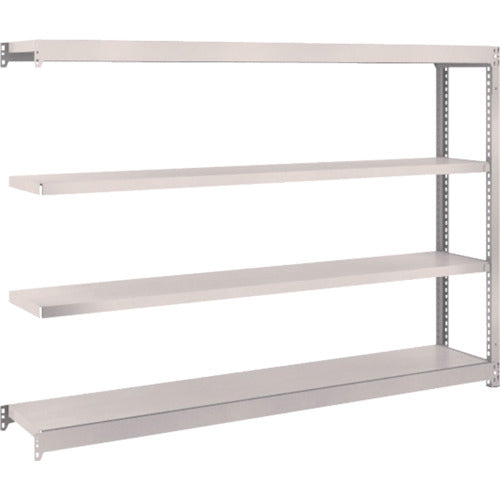 ●ボルトを1本も使用していないボルトレス構造で、分解・組み立て作業が簡単。組立作業の時間を大幅に短縮できます。●棚の段数変更が小刻みな25mmピッチで、自由に調整、変更ができます。●高さ、奥行が同じであれば、増結することができます。また、支柱を兼用することにより、コストダウンが図れます。●優れた断面構造で、荷重、横からのねじれにも強いC型形状の支柱を採用しています。●樹脂ベースの使用により、床を傷つけません。
