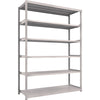 ●間口(mm):1802●奥行(mm):889●高さ(mm):2407●有効間口(mm):1716●色:ネオグレー●棚段数(段):6●均等積載量(kg/段):200●最大積載量(kg/台):1000●棚板調整ピッチ(mm):25●タイプ:単体型●組立目安:2人30分