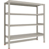 ●間口(mm):1861●奥行(mm):581●高さ(mm):1811●有効間口(mm):1760●色:ネオグレー●棚段数(段):4●均等積載量(kg/段):300●最大積載量(kg/台):900●棚板調整ピッチ(mm):25●タイプ:単体型●組立目安:2人30分