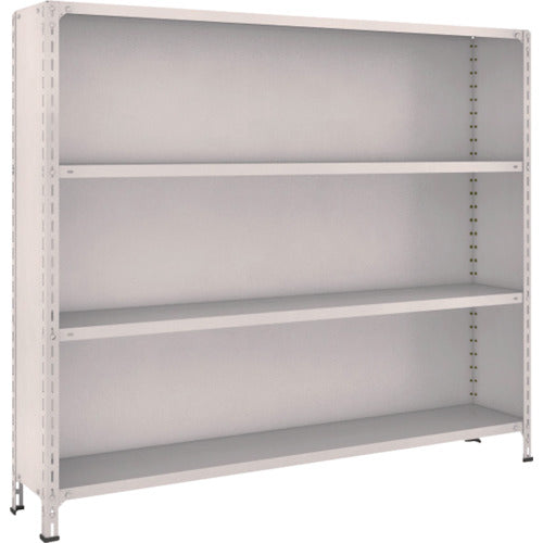 ●間口(mm):1815●奥行(mm):315●高さ(mm):1504●有効間口(mm):1726●色:ネオグレー●棚段数(段):4●均等積載量(kg/段):100●最大積載量(kg/台):1000●棚板調整ピッチ(mm):50●組立目安:2人40分●タイプ:単体型
