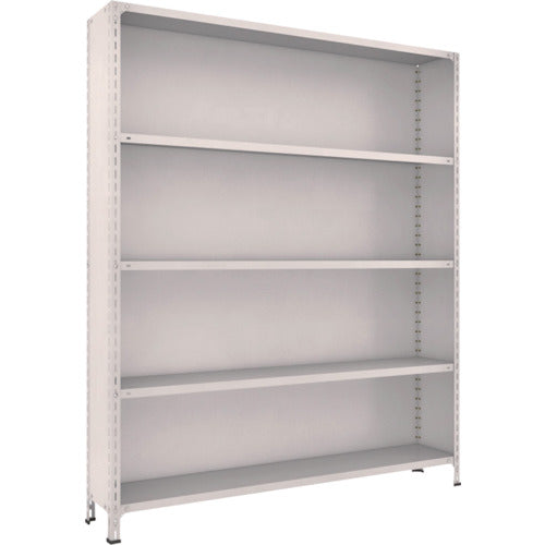 ●間口(mm):1815●奥行(mm):315●高さ(mm):2104●有効間口(mm):1726●色:ネオグレー●棚段数(段):5●均等積載量(kg/段):100●最大積載量(kg/台):1000●棚板調整ピッチ(mm):50●組立目安:2人40分●タイプ:単体型