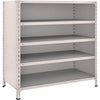 ●間口(mm):1215●奥行(mm):615●高さ(mm):1204●有効間口(mm):1126●色:ネオグレー●棚段数(段):5●均等積載量(kg/段):100●最大積載量(kg/台):1000●棚板調整ピッチ(mm):50●組立目安:2人40分●タイプ:単体型
