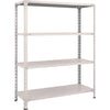●間口(mm):1215●奥行(mm):465●高さ(mm):1504●有効間口(mm):1126●色:ネオグレー●棚段数(段):4●均等積載量(kg/段):100●最大積載量(kg/台):1000●棚板調整ピッチ(mm):50●組立目安:2人30分●タイプ:単体型