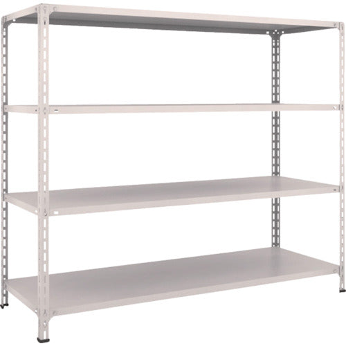 ●間口(mm):1815●奥行(mm):615●高さ(mm):1504●有効間口(mm):1726●色:ネオグレー●棚段数(段):4●均等積載量(kg/段):100●最大積載量(kg/台):1000●棚板調整ピッチ(mm):50●組立目安:2人30分●タイプ:単体型