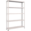 ●間口(mm):1215●奥行(mm):315●高さ(mm):1804●有効間口(mm):1126●色:ネオグレー●棚段数(段):5●均等積載量(kg/段):100●最大積載量(kg/台):1000●棚板調整ピッチ(mm):50●組立目安:2人30分●タイプ:単体型