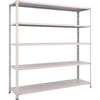 ●間口(mm):1815●奥行(mm):465●高さ(mm):1804●有効間口(mm):1726●色:ネオグレー●棚段数(段):5●均等積載量(kg/段):100●最大積載量(kg/台):1000●棚板調整ピッチ(mm):50●組立目安:2人30分●タイプ:単体型