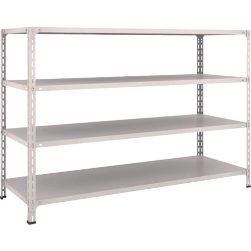 ●間口(mm):1815●奥行(mm):615●高さ(mm):1204●有効間口(mm):1726●色:ネオグレー●棚段数(段):4●均等積載量(kg/段):100●最大積載量(kg/台):1000●棚板調整ピッチ(mm):50●組立目安:2人30分●タイプ:単体型