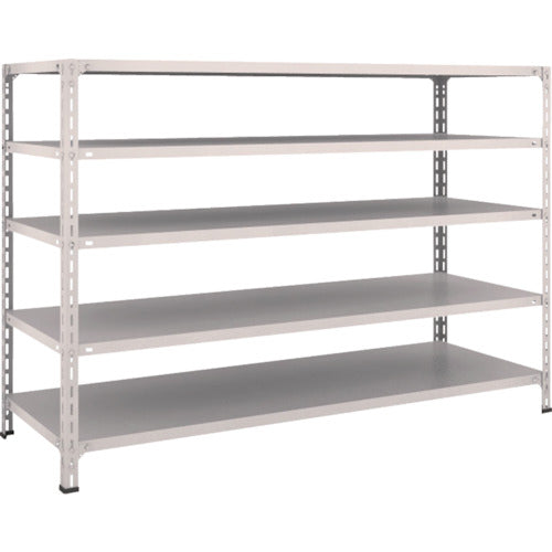 ●間口(mm):1815●奥行(mm):615●高さ(mm):1204●有効間口(mm):1726●色:ネオグレー●棚段数(段):5●均等積載量(kg/段):100●最大積載量(kg/台):1000●棚板調整ピッチ(mm):50●組立目安:2人30分●タイプ:単体型