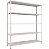 ●間口(mm):1815●奥行(mm):465●高さ(mm):2104●有効間口(mm):1726●色:ネオグレー●棚段数(段):5●均等積載量(kg/段):100●最大積載量(kg/台):1000●棚板調整ピッチ(mm):50●組立目安:2人30分●タイプ:単体型