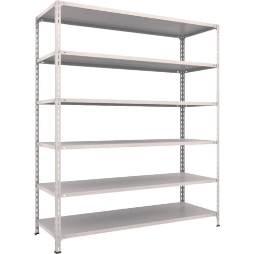 ●間口(mm):1815●奥行(mm):615●高さ(mm):2104●有効間口(mm):1726●色:ネオグレー●棚段数(段):6●均等積載量(kg/段):100●最大積載量(kg/台):1000●棚板調整ピッチ(mm):50●組立目安:2人30分●タイプ:単体型