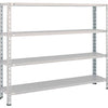 ●間口(mm):1515●奥行(mm):315●高さ(mm):1204●有効間口(mm):1426●色:ネオグレー●棚段数(段):4●均等積載量(kg/段):100●最大積載量(kg/台):1000●棚板調整ピッチ(mm):50●組立目安:2人30分●タイプ:単体型