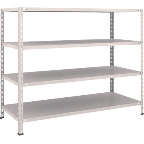 ●間口(mm):1515●奥行(mm):615●高さ(mm):1204●有効間口(mm):1426●色:ネオグレー●棚段数(段):4●均等積載量(kg/段):100●最大積載量(kg/台):1000●棚板調整ピッチ(mm):50●組立目安:2人30分●タイプ:単体型