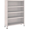 ●間口(mm):890●奥行(mm):315●高さ(mm):1204●有効間口(mm):801●色:ネオグレー●棚段数(段):5●均等積載量(kg/段):100●最大積載量(kg/台):1000●棚板調整ピッチ(mm):50●組立目安:2人40分●タイプ:単体型