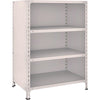 ●間口(mm):890●奥行(mm):615●高さ(mm):1204●有効間口(mm):801●色:ネオグレー●棚段数(段):4●均等積載量(kg/段):100●最大積載量(kg/台):1000●棚板調整ピッチ(mm):50●組立目安:2人40分●タイプ:単体型