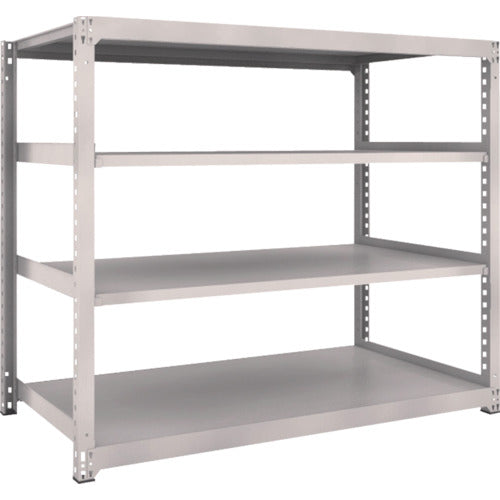 ●間口(mm):1861●奥行(mm):931●高さ(mm):1511●有効間口(mm):1740●色:ネオグレー●棚段数(段):4●均等積載量(kg/段):300●最大積載量(kg/台):2500●棚板調整ピッチ(mm):25●タイプ:単体型●組立目安:2人30分