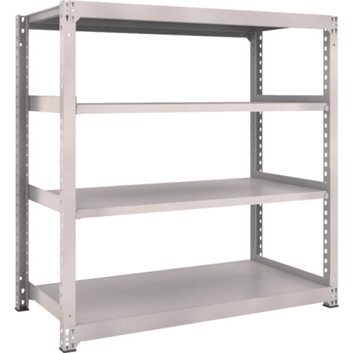 ●間口(mm):1561●奥行(mm):731●高さ(mm):1511●有効間口(mm):1440●色:ネオグレー●棚段数(段):4●均等積載量(kg/段):300●最大積載量(kg/台):2500●棚板調整ピッチ(mm):25●タイプ:単体型●組立目安:2人30分