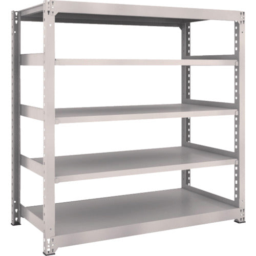 ●間口(mm):1561●奥行(mm):731●高さ(mm):1511●有効間口(mm):1440●色:ネオグレー●棚段数(段):5●均等積載量(kg/段):300●最大積載量(kg/台):2500●棚板調整ピッチ(mm):25●タイプ:単体型●組立目安:2人30分