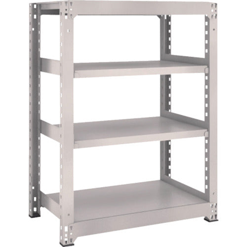 ●間口(mm):961●奥行(mm):581●高さ(mm):1211●有効間口(mm):840●色:ネオグレー●棚段数(段):4●均等積載量(kg/段):300●最大積載量(kg/台):2500●棚板調整ピッチ(mm):25●タイプ:単体型●組立目安:2人30分
