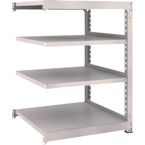 ●間口(mm):900●奥行(mm):931●高さ(mm):1211●有効間口(mm):840●色:ネオグレー●棚段数(段):4●均等積載量(kg/段):300●最大積載量(kg/台):2500●棚板調整ピッチ(mm):25●タイプ:連結型●組立目安:2人30分