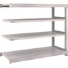 ●間口(mm):1500●奥行(mm):581●高さ(mm):1211●有効間口(mm):1440●色:ネオグレー●棚段数(段):4●均等積載量(kg/段):300●最大積載量(kg/台):2500●棚板調整ピッチ(mm):25●タイプ:連結型●組立目安:2人30分