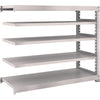 ●間口(mm):1500●奥行(mm):581●高さ(mm):1211●有効間口(mm):1440●色:ネオグレー●棚段数(段):5●均等積載量(kg/段):300●最大積載量(kg/台):2500●棚板調整ピッチ(mm):25●タイプ:連結型●組立目安:2人30分