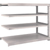 ●間口(mm):1500●奥行(mm):731●高さ(mm):1211●有効間口(mm):1440●色:ネオグレー●棚段数(段):4●均等積載量(kg/段):300●最大積載量(kg/台):2500●棚板調整ピッチ(mm):25●タイプ:連結型●組立目安:2人30分