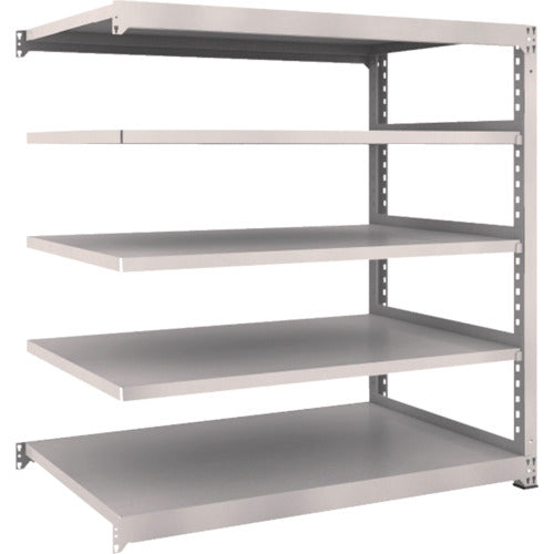 ●間口(mm):1500●奥行(mm):931●高さ(mm):1511●有効間口(mm):1440●色:ネオグレー●棚段数(段):5●均等積載量(kg/段):300●最大積載量(kg/台):2500●棚板調整ピッチ(mm):25●タイプ:連結型●組立目安:2人30分