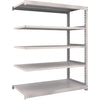 ●間口(mm):1500●奥行(mm):731●高さ(mm):1811●有効間口(mm):1440●色:ネオグレー●棚段数(段):5●均等積載量(kg/段):300●最大積載量(kg/台):2500●棚板調整ピッチ(mm):25●タイプ:連結型●組立目安:2人30分