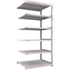 ●間口(mm):1200●奥行(mm):931●高さ(mm):2411●有効間口(mm):1140●色:ネオグレー●棚段数(段):6●均等積載量(kg/段):500●最大積載量(kg/台):2500●棚板調整ピッチ(mm):25●タイプ:連結型●組立目安:2人30分
