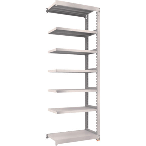 ●間口(mm):900●奥行(mm):481●高さ(mm):2411●有効間口(mm):840●色:ネオグレー●棚段数(段):7●均等積載量(kg/段):500●最大積載量(kg/台):2500●棚板調整ピッチ(mm):25●タイプ:連結型●組立目安:2人30分