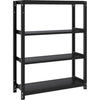 ●間口(mm):942●奥行(mm):343●高さ(mm):1200●有効間口(mm):862●色:サテンブラック●棚段数(段):4●均等積載量(kg/段):100●最大積載量(kg/台):700●棚板調整ピッチ(mm):25●タイプ:単体型
